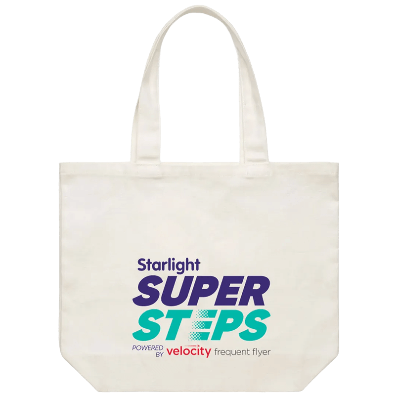 Raise $300 and flaunt your achievement with the Super Steps Tote Bag.